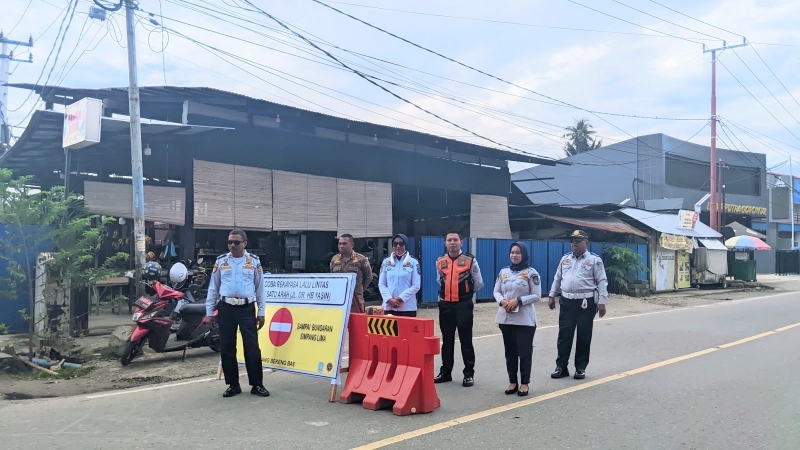Beberapa pengendara tampak menyesuaikan diri dengan rute baru, sementara petugas terus memberi arahan agar lalu lintas tetap kondusif.