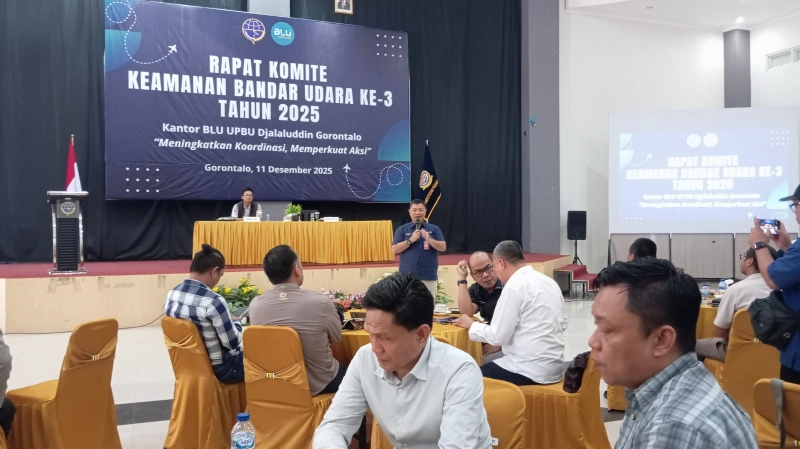Tilangonews.com – Menjelang perayaan Natal dan Tahun Baru (Nataru), Kantor BLU UPBU Djalaluddin Gorontalo menggelar Rapat Komite Keamanan Bandar Udara di Hotel El-Madinah, Kota Gorontalo, Kamis (11/12/2025).