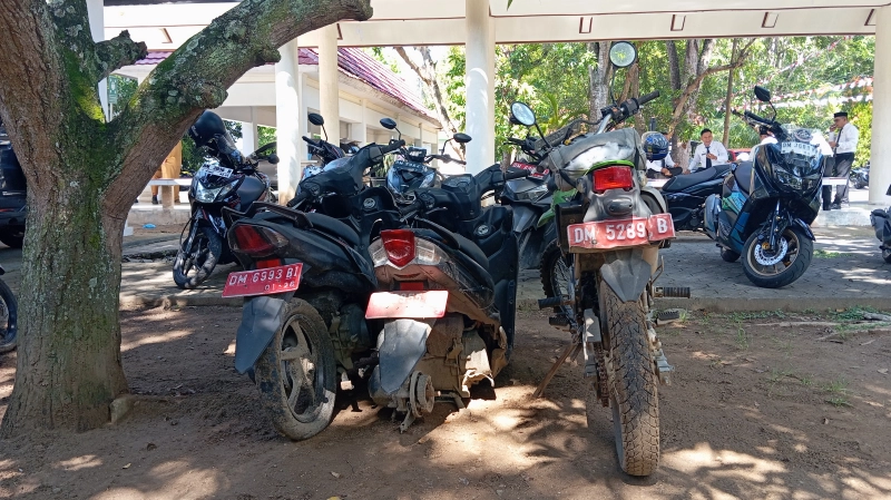 Berdasarkan pantauan Tilangonews.com pada Senin (13/10/2025), dari tiga unit sepeda motor dinas yang terparkir, dua di antaranya kehilangan sejumlah komponen. Kedua motor itu masing-masing merek Yamaha Mio Soul dan Yamaha Mio M3.