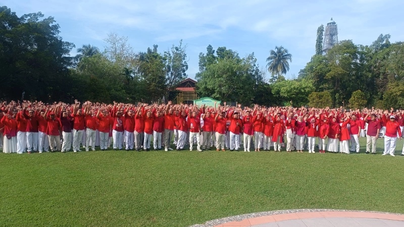 Tilangonews.com – Suasana halaman Kantor Bupati Gorontalo pada Rabu (13/8/2025) tampak berbeda. Para pegawai Aparatur Sipil Negara (ASN) dan non-ASN di lingkungan Pemerintah Kabupaten Gorontalo kompak mengenakan pakaian merah-putih dalam rangka memeriahkan peringatan Hari Ulang Tahun (HUT) ke-80 Kemerdekaan Republik Indonesia.